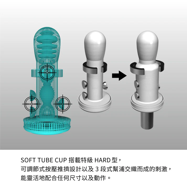 新配製軟性材質與新開發模組一起織成的合奏曲,溫柔地柔軟地把你包裹。柔軟的杯型,在揉、握等的刺激下可細膩地傳達。從開始插入到結束後的擠出為止,可體驗至最後的最後。