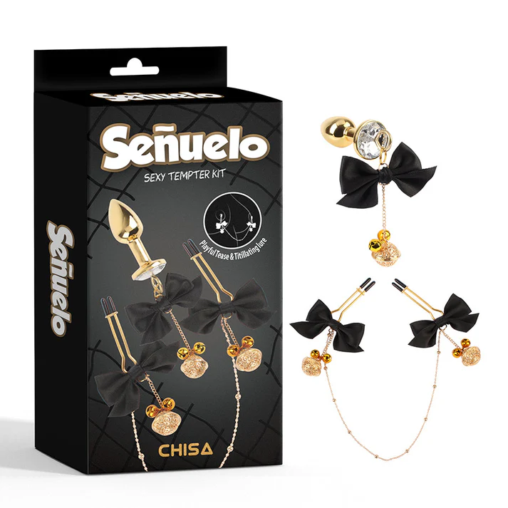 CHISA – Sexy Tempter Kit 黑蝴蝶結吊墜乳頭夾+後庭塞