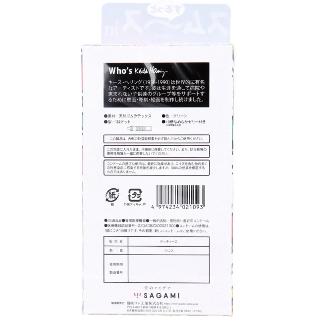 相模 Keith Haring 10倍潤滑乳膠安全套,擁有果凍般的滑順觸感,使用特殊果凍光滑10倍,減少插入阻力。減輕性交過程中的皮膚負擔和疼痛,支持愛情培養。單級握持形狀,防止脫落,有效日期至2028年6月。